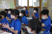 3年3組に案内。給食の様子を写真におさめます。