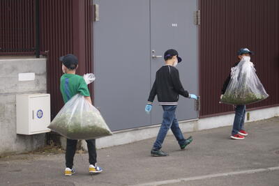 敷地が広く、大変な作業となりましたが、お父さんお母さんの力は絶大です。分担しながら見事に除草をしていただきました。ありがとうございます。