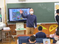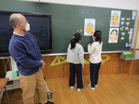 2023年1月14日 10時00分ALTのリッキー先生と一緒に、楽しく外国語活動に取り組んでいる3年生。