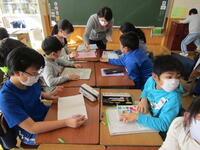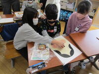 2023年1月13日 10時00分1月12日(木)に、中央教材の渡辺様にご指導いただきながら、6年生が卒業制作に取り組み始めました。