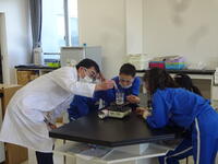 中学校の先生に専門的な指導をしていただき、4年生の子ども達は興味津々でした。