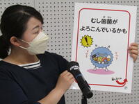 養護教諭からは、虫歯の予防について、「8020」(80歳まで自分の歯で)や、歯ブラシの注意点