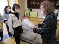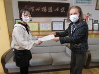 2022年3月3日 12時00分3月2日(水)に、須賀川地方ユネスコ協会会長八木沼様と係の方にお越しいただき、寺子屋募金贈呈式