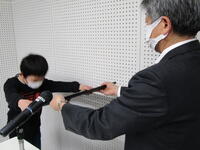 2022年2月18日 10時05分2月17日(木)に、市商工会議所青年部の方々にご来校いただき、4年の片桐君へ、田善賞