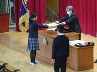 「栄光をたたえて」は、今年度特設活動で特に活躍した6年生児童を、「皆勤賞」は、6年間1日も欠席を