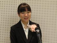 JRC登録式では、ボランティア委員副委員長の星さんにワッペンを授与し、委員長の佐藤さんが、