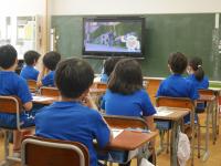 交通安全教室では、1~3年生は公道での歩行訓練、4~6年生はDVDを視聴して、特に自転車の乗り方