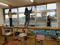 今回は、1・3・5年生の保護者の皆様方を中心に、窓ガラス拭きやトイレ清掃などの