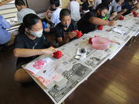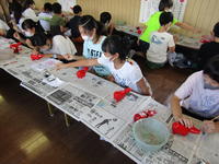 子どもたちは、事前に学習していた日新館や飯盛山、鶴ヶ城を見学したり、赤べこ絵付け体験をしたりして