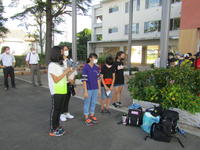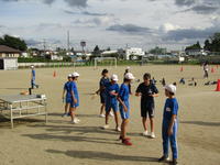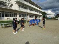 須賀川第一中学校から2名の先生と、4名の3年生が来て下さり、陸上運動について御指導いただきました。