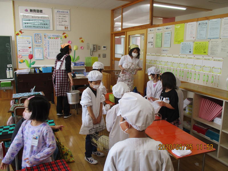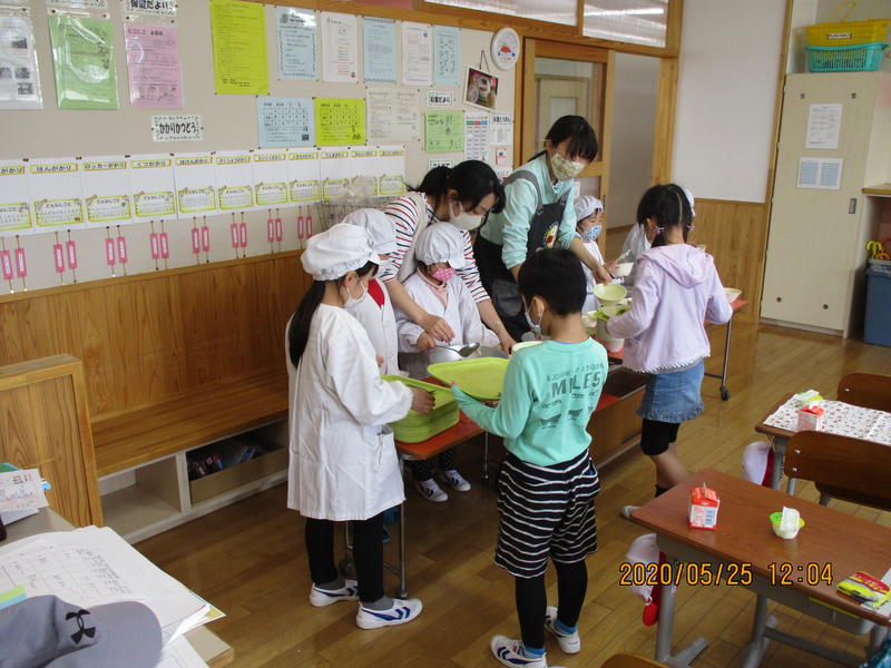 2020年5月26日 11時35分今日は、1年生にとって初めての給食です。