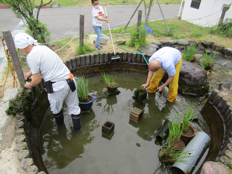4・5月の臨時休業期間も、お二人には何度も池の掃除等をしていただいていました。