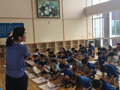 大きな校舎や特別教室、広い体育館などに驚きの声を上げながら、校舎内を歩いて回りました。