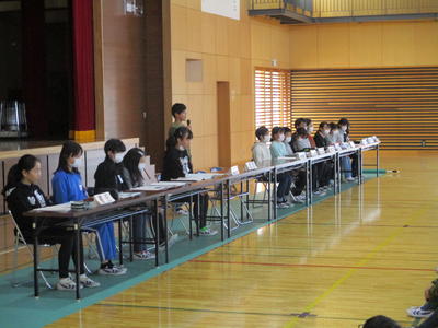 各委員会の活動の反省と、来年度への引き継ぎ事項を発表した後、質問や意見を述べ合い、活発な話し合いになりました。