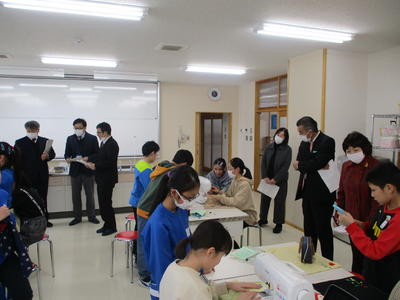 2020年2月19日 11時16分5年生の家庭科では、初めてミシンを使っての学習「ミシンにトライ!」を行っています。ほとんどの子どもたちが、ミシンを使うのが初めてです。上糸や下糸の出し方、調整など、縫い始めるまでに時間がかかりますが、そこを手助けしてくださるのがミシンボランティアのみなさんです。ボランティアの皆さんのおかげで、学習がスムーズに進んでいます。子どもたちの「できた!」の声も、あちこちから聞こえます。