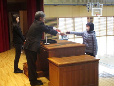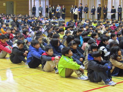 3校時目、全校児童が体育館に集まり、終業式がおこなわれました。校長先生からは2学期をふり返り、一人一人が目標に向かってしっかりと取り組めたこと、「おうすい」の「す」にちなみ素直な心で生活できたこと、「い」にちなみ一生懸命本気になって活動できたことがとてもよかったというお話をいただきました。