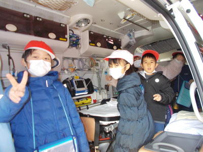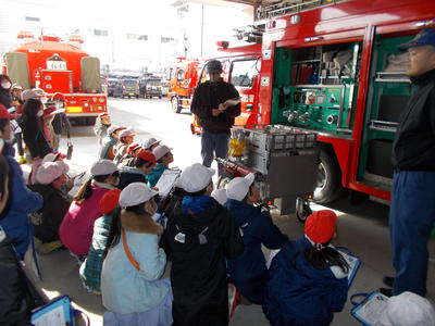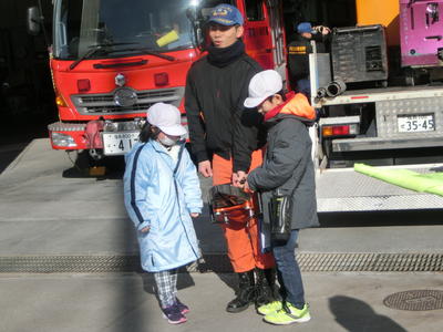 2020年1月22日 11時55分社会科「火事からくらしを守る」の学習で、3年生が消防署見学に出かけました。