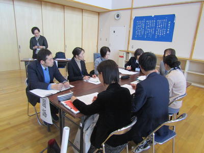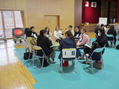 また、健康診断を行っている最中に、保護者の方を対象にした「家庭教育学級」も行われました。9名の家庭教育インストラクターの方々のご協力により、各グループとも子育てに関する話合いを十分に行うことができたようです。