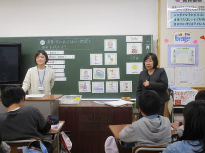 2019年11月29日 17時40分5月の第1回(第一中学校会場)に引き続き、第2回一小・一中一貫教育授業研究会が、第一小学校を会場に行われました。今回は、4~6学年9学級とさくら学級の10学級に中学校の先生方が入り、T.Tで授業を行いました。教科は国語科、社会科、算数科、外国語活動、自立活動でした。小中でチームを組んで授業を行う担当者同士が事前の打ち合わせを十分に行い、子どもたちの興味を引き、学びが深まる授業を展開しました。
