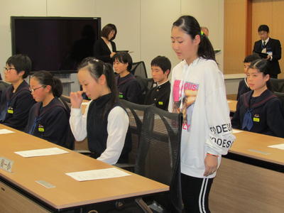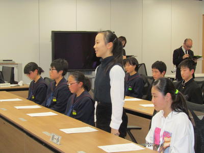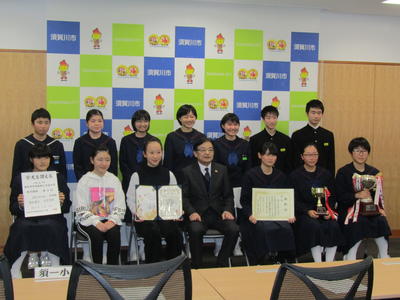 2019年12月16日 17時30分先週13日に市役所において、市内小中学校の東北大会出場報告会が行われました。一小マーチングバンド部も、11月に宮城県で行われた東北大会の出場を部長、副部長の2名が報告しました。全国大会出場を逃したことで、時折悔しさをにじませながらも、精いっぱい取り組んだ練習や大会の様子をしっかりと報告することができました。