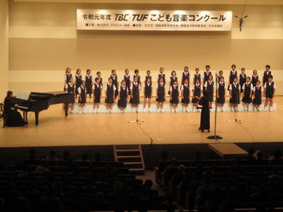 2019年8月26日 09時00分24日(土)喜多方プラザにおいて、TBC子ども音楽コンクールが開かれました。須賀川市立第一小学校特設合唱部の子どもたちも、これまでの練習の成果をステージ上で思う存分発揮し、素敵なハーモニーを響かせました。「地区大会のときよりも上手に歌えた」「ちょっと緊張したけど、バッチリだった」など、歌い終えた子どもたちは、晴れやかで満足げな表情を見せていました。これまでの練習への御協力、そして、遠く喜多方までの応援、本当にありがとうございました。