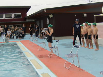 なお、3,4校時に予定されていた2年生の水泳記録会は、天候不良のため9月2日(月)の3,4校時に延期となりました。