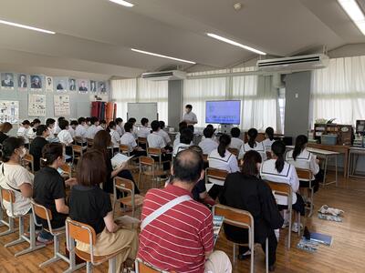 今回は県立高校、私立高校合わせて16校の先生に学校の説明をお願いしました。生徒たちは各高校の先生の話を真剣な眼差しで聞いていました。また、多くの保護者の方にも参加していただきました。