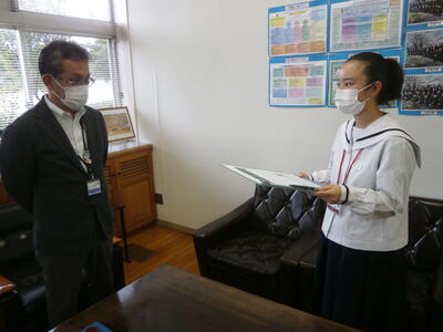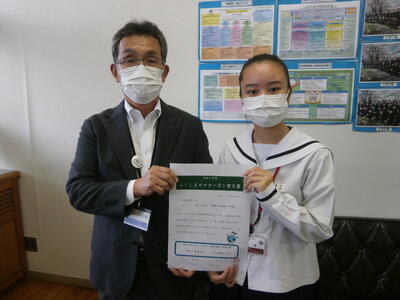 本日昼休みに、校長先生と生徒会長で「ふくしまゼロカーボン宣言書」の調印式を行いました。