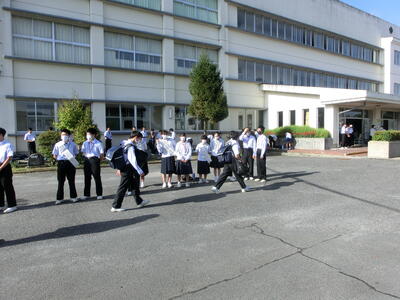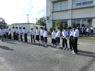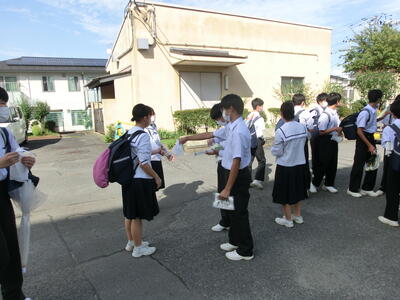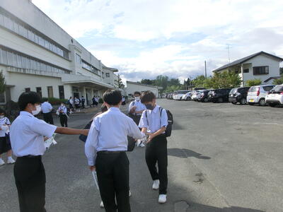 生徒会執行部が発案して行なっている行事です。生徒の皆さんにゴミ袋と手袋を渡し、下校の際にゴミ拾いをしながら帰ってもらうことで地域をきれいにしていこうという取り組みです。