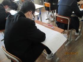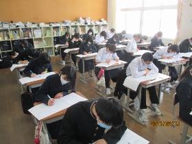 各クラスとも最後のテスト問題に集中して取り組み、緊張感が漂っていました。