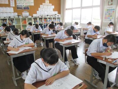 2021年6月23日 10時18分本日、1学期期末テストが行われています。どの学年も生徒は真剣にテストに臨んでいました。