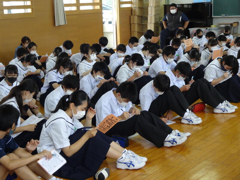 6月23日(水)6校時・24日(木)朝学習の時間、1年生は完成した飯坂学習旅行のしおりを用いて、全員で読み合わせを行いました。しおりの表紙のイラストは、1学年の旅行実行委員が楽しい学習旅行をイメージして描いてくれたもので、とてもクオリティーの高いものとなりました。学習旅行を来週6月29日(火)に控え、生徒たちは当日の行動や持ち物などについてメモを取りながら真剣に説明を聞いていました。