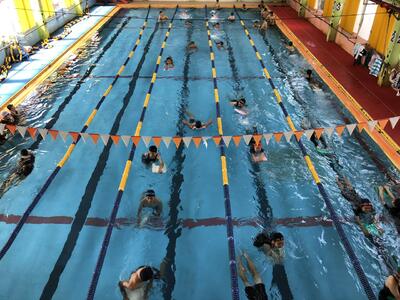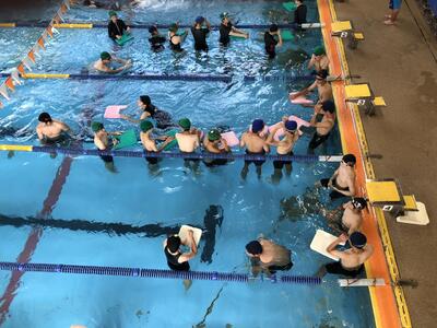 本校水泳授業は、各学年ごとに民間スイミングスクールの室内プールで実施しています。