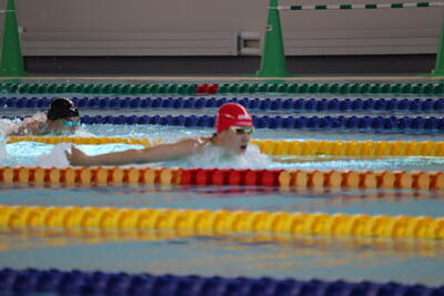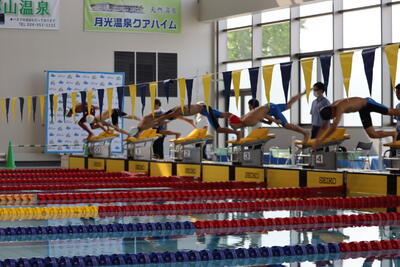 本校からは郡山しんきん開成山プールで開催されている「水泳競技大会」に3名の選手が出場しています。