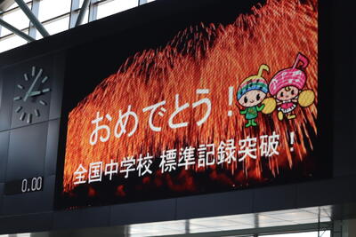 3年生男子生徒は大会新記録、全国標準記録突破して予選1位で明日の決勝進出