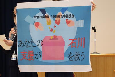 2024年1月9日 10時27分1月1日に発生した令和6年能登半島地震で被災された方々を支援するために、自分たちができることはないか、冬休み中に生徒会長とJRC部長が中心となって準備を行い、義援金の活動を行うことにしました。