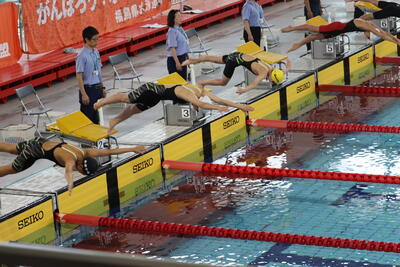 女子100m平泳ぎ予選 3年生女子 予選全体5位で決勝進出