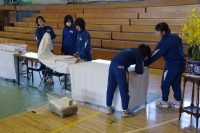 本日午前中、新2・3年生が登校し、入学式の準備をしました。子どもたちは、上級生としての自覚を持って熱心に作業をしました。おかげで、予定時間よりも早めに立派な式場が完成しました。