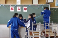 2016年4月5日 11時45分本日午前中、新2・3年生が登校し、入学式の準備をしました。子どもたちは、上級生としての自覚を持って熱心に作業をしました。おかげで、予定時間よりも早めに立派な式場が完成しました。