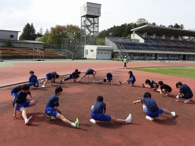 2016年4月26日 18時17分 特設陸上部の子どもたちは、春休みから支部陸上大会に向けて校庭で朝の練習を計画的に行ってきました。本日4月26日(火)午後、子どもたちは楽しみにしていた鏡石町の鳥見山陸上競技場で初練習をしました。本格的な競技場で練習を行うことにより、競技場の雰囲気に慣れたりスパイクを履いて効率の良いフォームをチェックすることができました。現時点での実力も知ることができたので、明日からの練習では具体的な目標を設定して一層熱が入ることと思います。なお、練習開始前と終了後は競技場の管理員さんと競技場に一中生らしいさわやかな挨拶をすることもできました。鳥見山陸上競技場での練習は今後数回予定しています。頑張れ一中生!