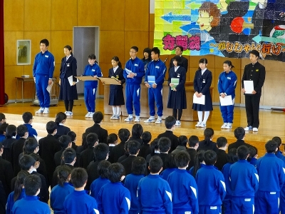 本日1月25日(水)6校時、表彰集会が行われました。今回は情報関係の検定試験での合格者や福島県絆ふれあい事業及び校内各種コンテストでの優秀者が多数表彰されました。