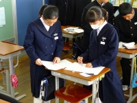 2017年12月15日 15時10分12月15日(金)、1・2年生を対象に第2回実力テストを行いました。生徒たちは、10月末~11月初めに行われた三者教育相談後、自分の進路に対する考えが次第に深まり、今回のテストを自分の夢の実現に向けた大切なテストと位置づけ、計画的に勉強を進めてきました。家庭学習で過去に出題された問題に取り組んだり、休み時間は友人と問題を出し合ったりして学習を続けてきました。テスト中はどの教室にもこれまでにない緊張感がみなぎり、テスト終了後には、あちらこちらから「やっと終わった!」という歓声が聞こえてきました。テスト終了後で大切なことは、反省と復習をしっかりと行うことです。渡された「模範解答と解説」で、必ず振り返りをするとともに理解不十分な箇所は解説を読んで理解を深めておきましょう。