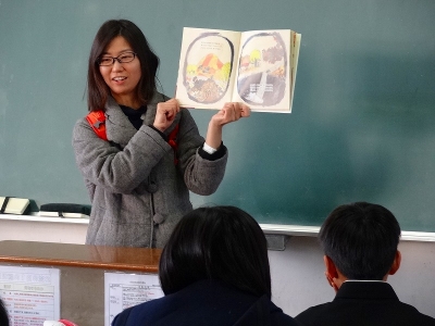 12月18日(月)朝の読書の時間、今年最後の「読み聞かせボランティア」が1年生対象にありました。どのクラスでも、生徒たちは心静かに読み聞かせボランティアの方々の朗読に聞き入っていました。