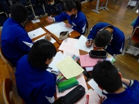 学年集会終了後は、各教室にもどり冬休みの計画表づくりに熱心に取り組みました。完成した冬休みの計画表は、生徒たちの生活を支える大切な道しるべとなります。御家庭でも計画表に目を通していただき、子どもたちの生活を見守っていただきたいと思います。