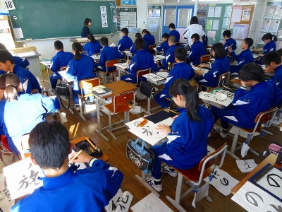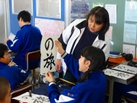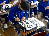 2017年12月20日 10時25分 12月に入り、国語の授業で習字を行っています。普段、あまり筆を手にすることのない生徒たちですが、気持ちを落ち着かせて課題の練習に取り組んでいます。書き初めは冬休みの課題となり、3学期始業式の日に2枚提出します。1枚は校内書きぞめ展に出品し、もう1枚は県書きぞめ展に出品します。1・2年生は全員参加し、3年生は希望者のみとなります。素晴らしい作品が書き上がることを期待しています。