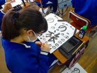 12月に入り、国語の授業で習字を行っています。普段、あまり筆を手にすることのない生徒たちですが、気持ちを落ち着かせて課題の練習に取り組んでいます。書き初めは冬休みの課題となり、3学期始業式の日に2枚提出します。1枚は校内書きぞめ展に出品し、もう1枚は県書きぞめ展に出品します。1・2年生は全員参加し、3年生は希望者のみとなります。素晴らしい作品が書き上がることを期待しています。