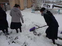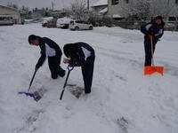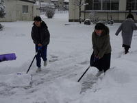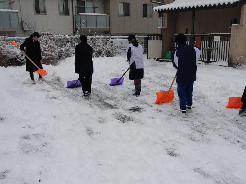 2019年1月26日 11時44分1月26日(土)7:00前、敷地内は今シーズン一番の積雪に覆われていました。休日なので、除雪をどうするか不安がよぎりましたが、そんな心配はすぐに消え去りました。部活動をするために登校してきたバレーボール部女子と吹奏楽部の生徒たちが中心となり、自主的にスコップを手に取り校門から駐車場まで一所懸命除雪をしてくれました。黙々と作業する生徒たちの姿に女子力のすごさを感じました。その後、駐車場脇にどかした雪は、サッカー部が中心となり、スノーダンプでさらにじゃまにならない場所に運んでくれました。今回も、多くの生徒たちの献身的な作業のおかげで、校舎前がきれいに除雪できました。