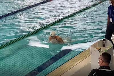女子100m平泳ぎに出場した1年女子ですが、入賞とはなりませんでしたががんばりました。