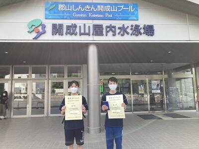 2年男子生徒は、先の福島県中学校体育大会水泳競技において、200mと400m個人メドレーに出場し見事全国標準記録を突破して、全国大会への出場権を獲得しました。