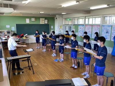 8月10日(水)に行われる地区音楽祭に向けて、特設合唱部の生徒達は日々練習を頑張っています。